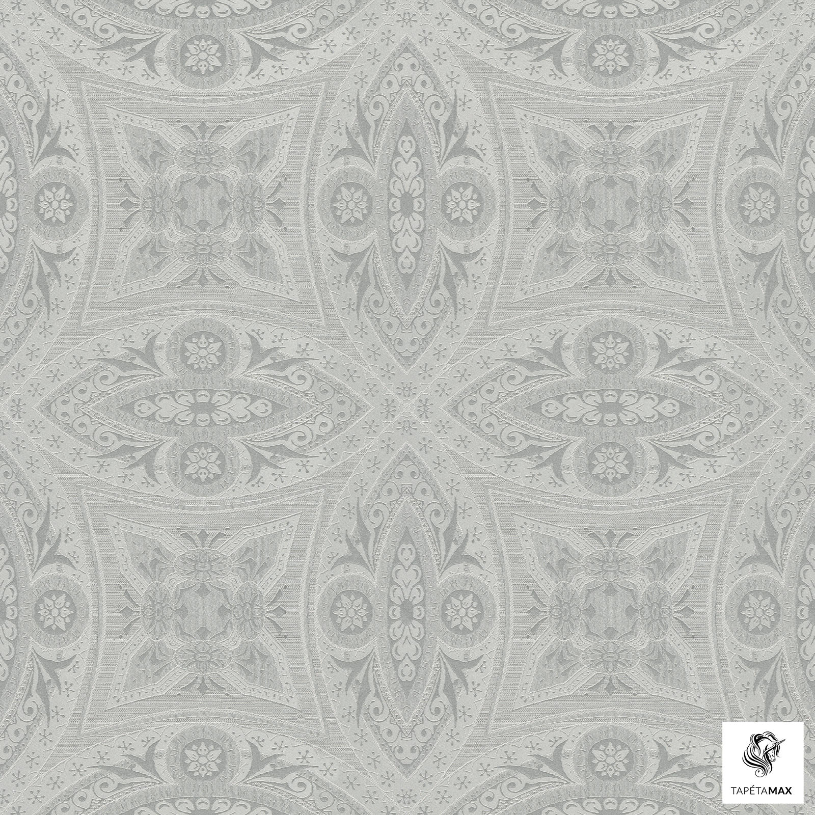 Elegáns ezüst színű, mintás vlies tapéta.