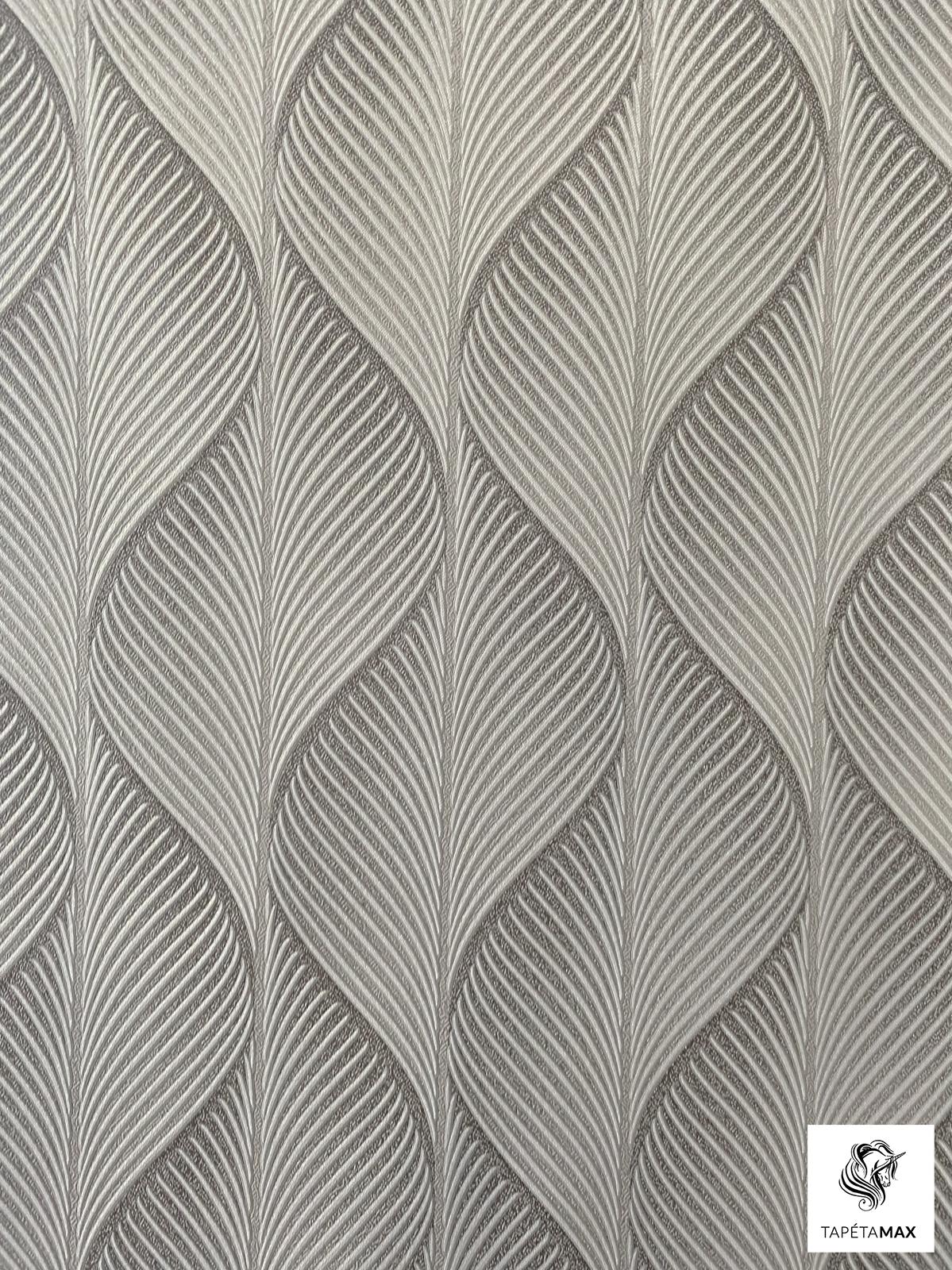 Barnya és bézs alapon arany fényű hullámos mintájú vlies tapéta.