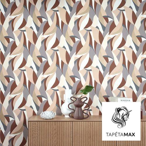 Barna-fehér-drapp-arany modern mintás vlies tapéta