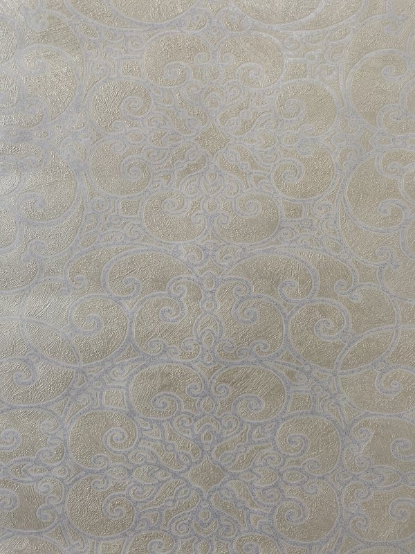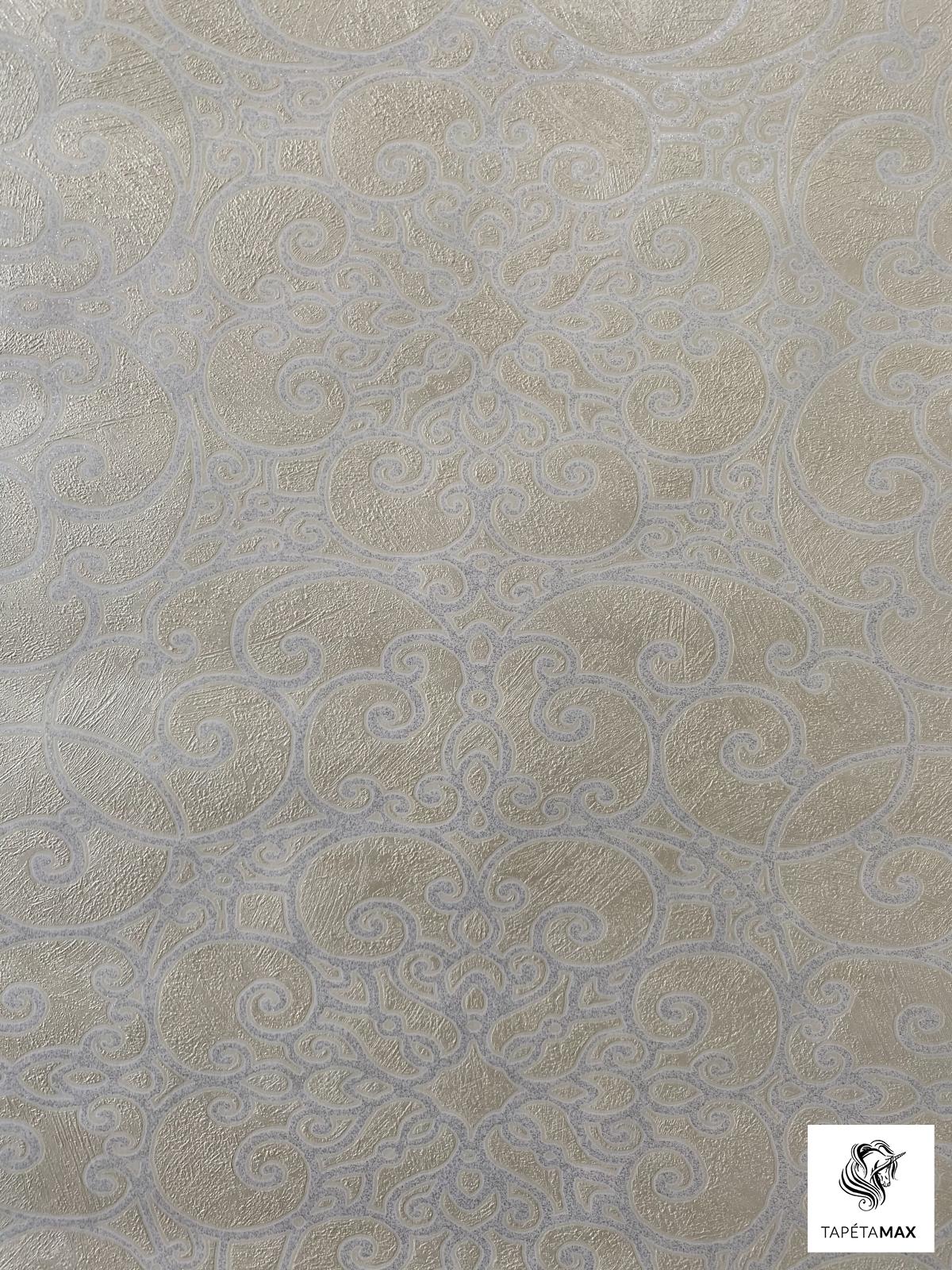Krémszínű alapon ezüst csillámos klasszikus mintás vlies tapéta.