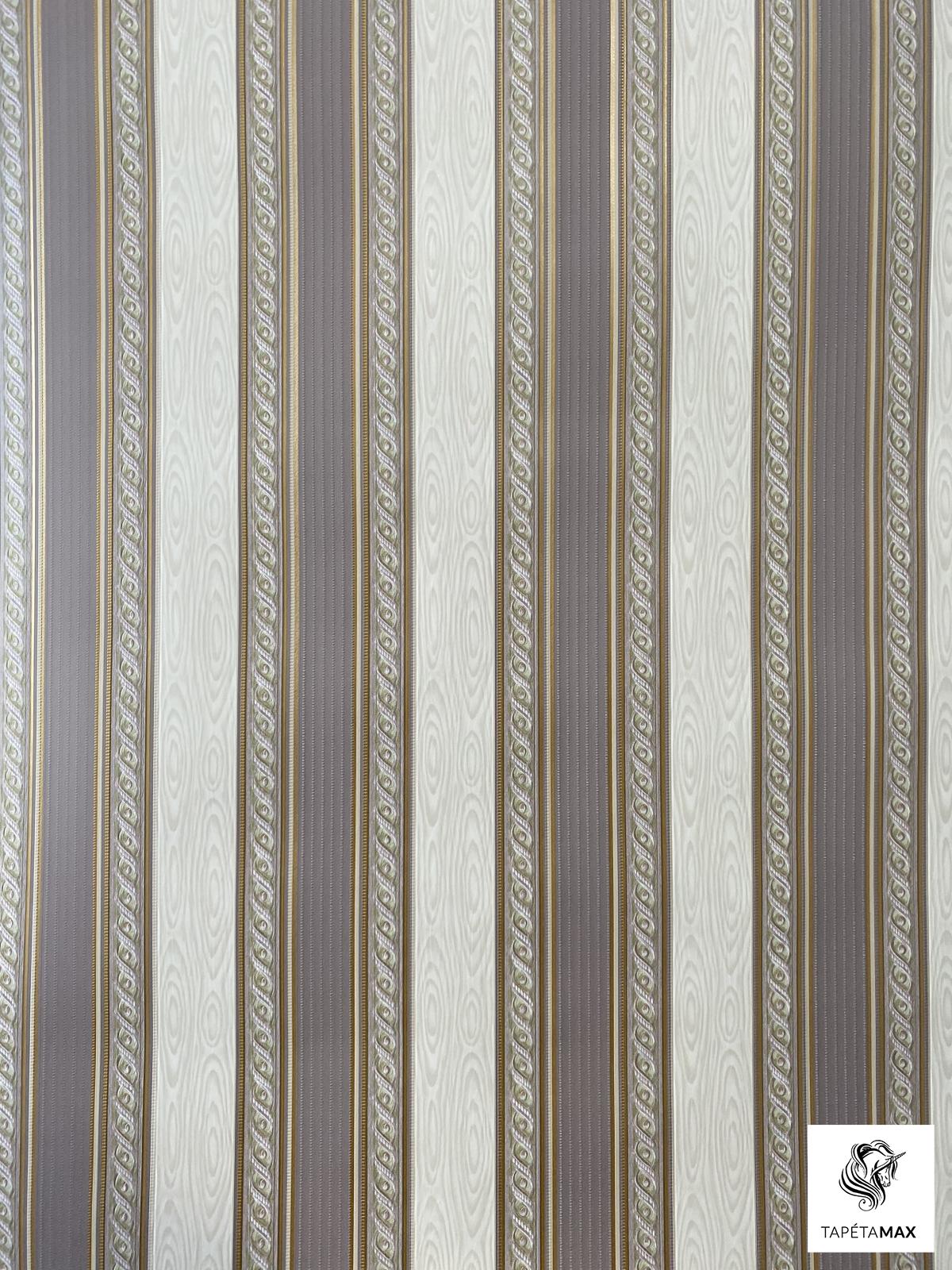 Barna és bézs csíkos, arany szállal futtatott kalsszikus papír tapéta.