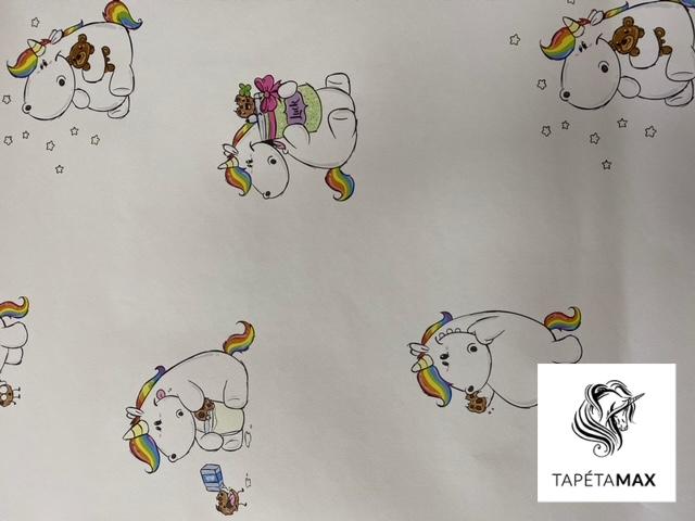 Fehér alapon színes unikornis mintás papír tapéta.