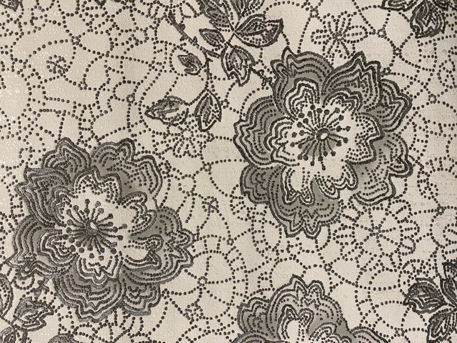 Halványszürke alapon sötét szürke virág mintás papír tapéta.