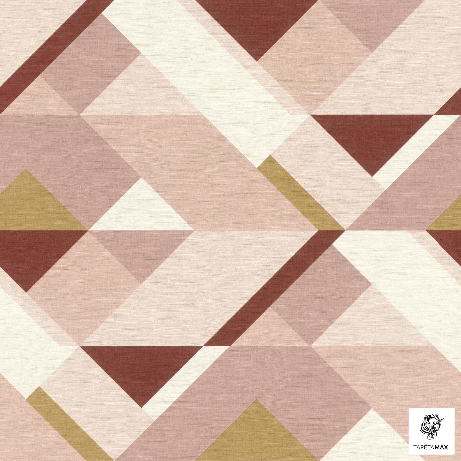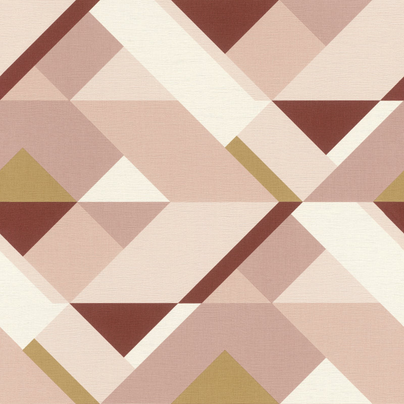 Rózsaszín, bordó és arany színű, geometriai mintás vlies dekor tapéta.