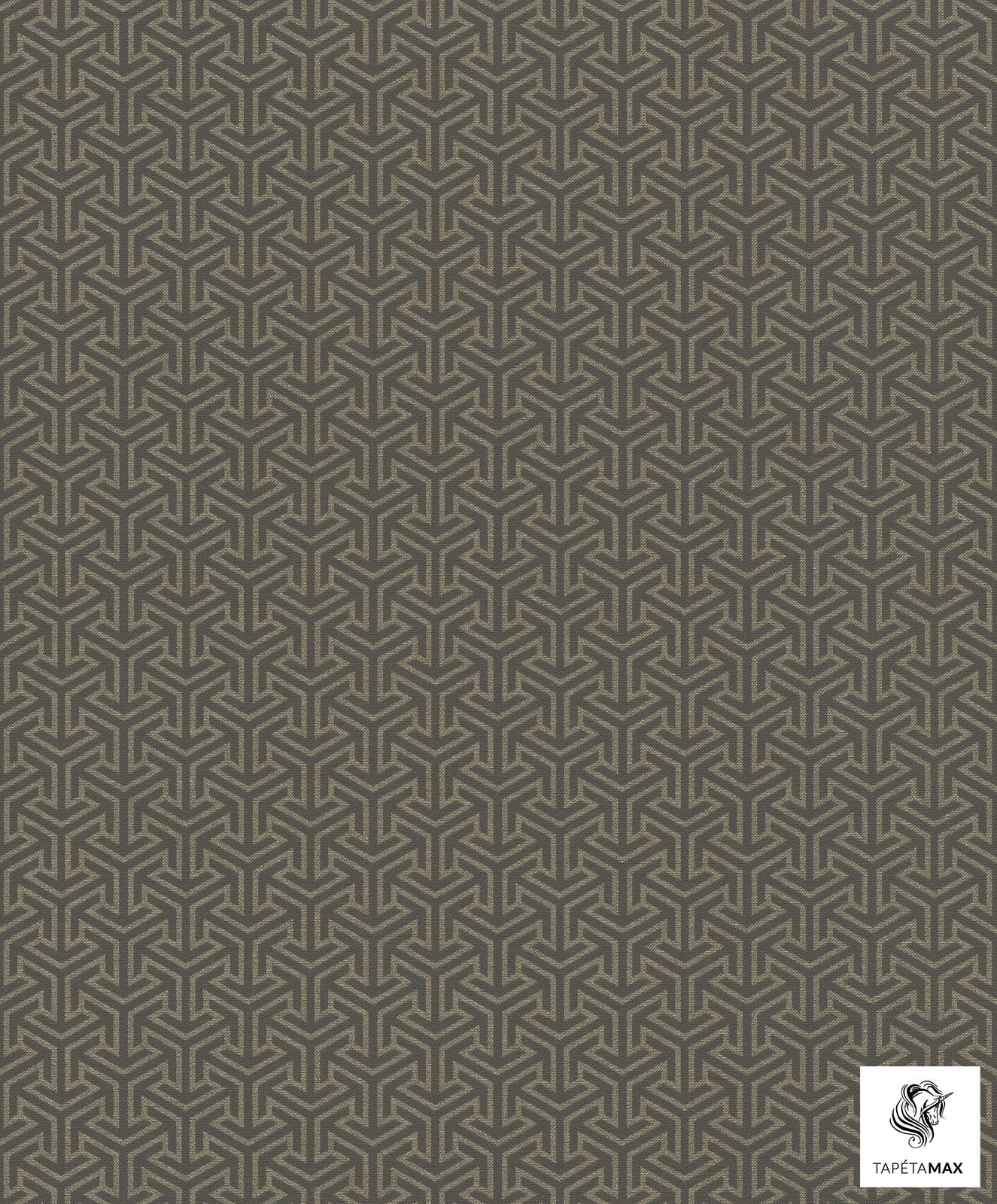 Sötét alapon arany színű geometriai mintás vlies tapéta.
